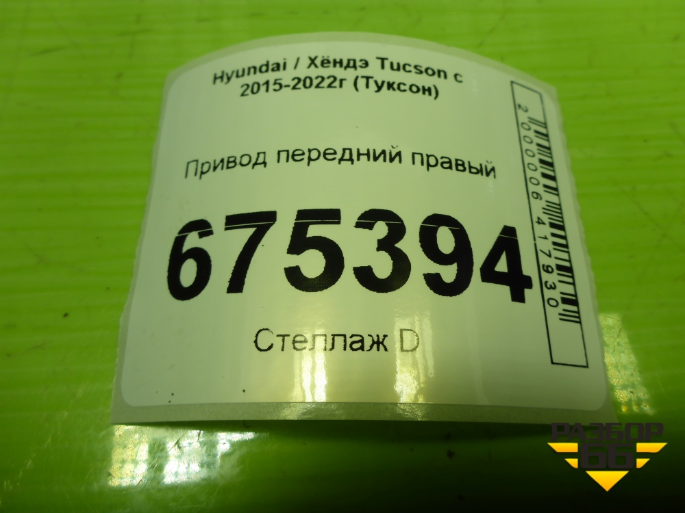 Привод передний правый (шлиц внутр-27 наруж-30) (49501D9140) для Hyundai Tucson с 2015-2022г (Туксон) в Тюмени
