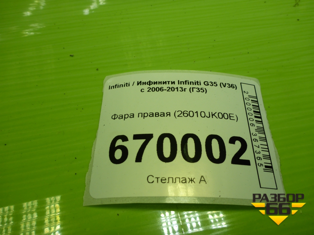 Фара правая (26010JK00E) для Infiniti Infiniti G35 (V36) с 2006-2013г (Г35) в Тюмени
