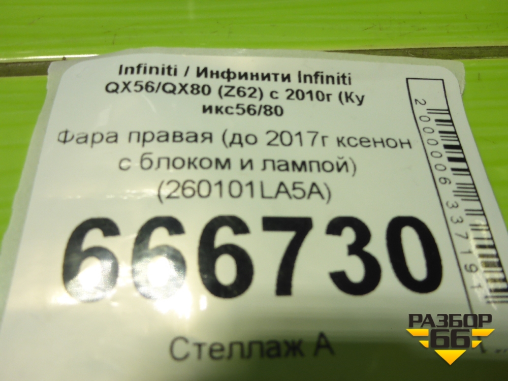 Фара правая (до 2017г ксенон с блоком и лампой) (260101LA5A) для Infiniti Infiniti QX56/QX80 (Z62) с 2010г (Ку икс56/80) в Тюмени