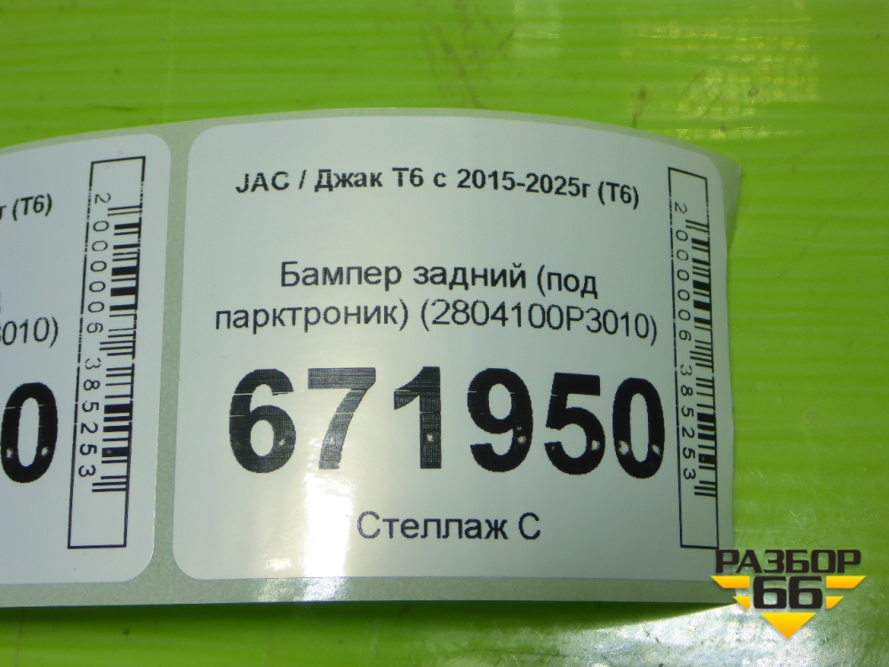 Бампер задний (под парктроник) (2804100P3010) для JAC T6 с 2015-2025г (Т6) в Тюмени
