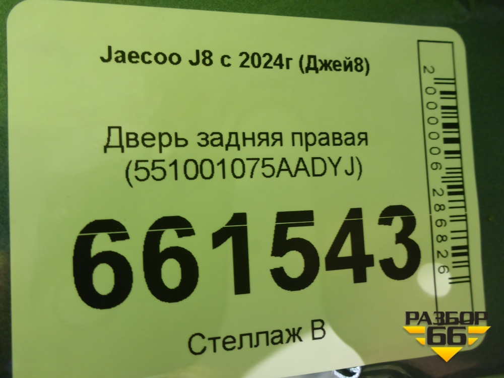 Дверь задняя правая (551001075AADYJ) для Jaecoo J8 c 2024г (Джей8) в Тюмени