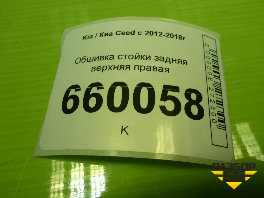 Обшивка багажника правая (верхняя 5ти дверный хетчбэк) (85861A2000) для Kia Ceed с 2012-2018г (Сид 2) в Тюмени