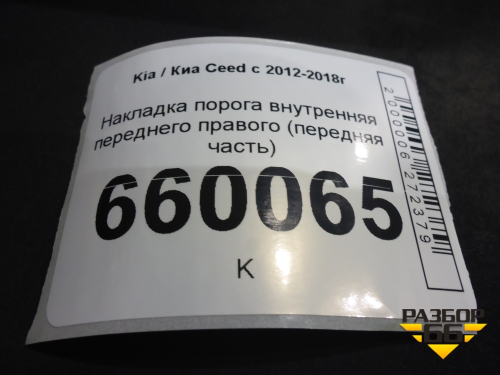 Накладка порога внутренняя переднего правого (передняя часть) (85824A2010) для Kia Ceed с 2012-2018г (Сид 2) в Тюмени