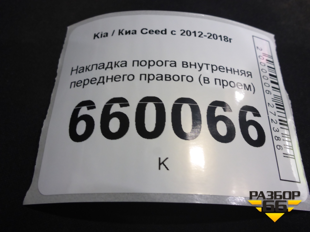 Накладка порога внутренняя переднего правого (в проём 5ти дверный кузов) (85883A2000) для Kia Ceed с 2012-2018г (Сид 2) в Тюмени