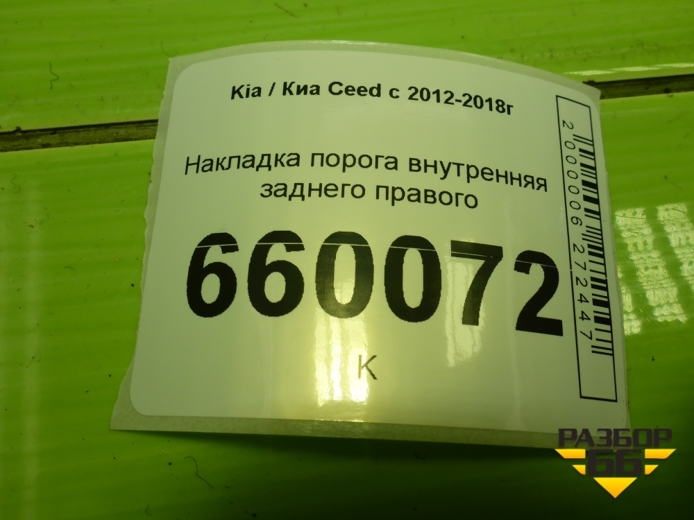 Накладка порога внутренняя заднего правого (5-ти дверный кузов) (85885A2010) для Kia Ceed с 2012-2018г (Сид 2) в Тюмени