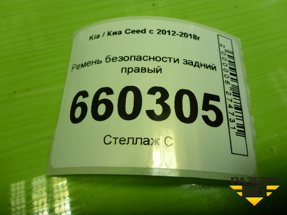 Ремень безопасности задний правый (89820A6000) для Kia Ceed с 2012-2018г (Сид 2) в Тюмени