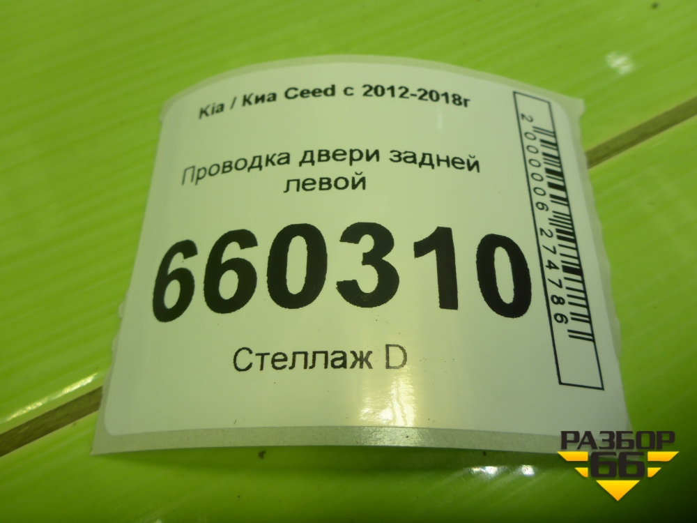 Проводка двери задней левой (эл.стеклоподъёмник) (91650A2030) для Kia Ceed с 2012-2018г (Сид 2) в Тюмени