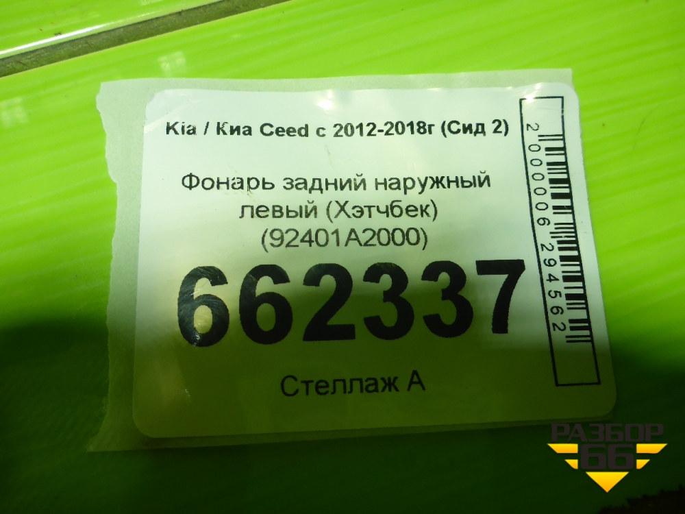 Фонарь задний наружный левый (Хэтчбек) (92401A2000) для Kia Ceed с 2012-2018г (Сид 2) в Тюмени