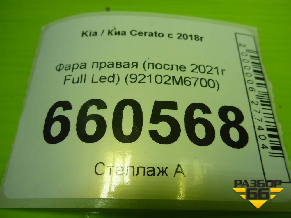 Фара правая (после 2021г Full Led) (92102M6700) для Kia Cerato с 2018г (Серато 4) в Тюмени