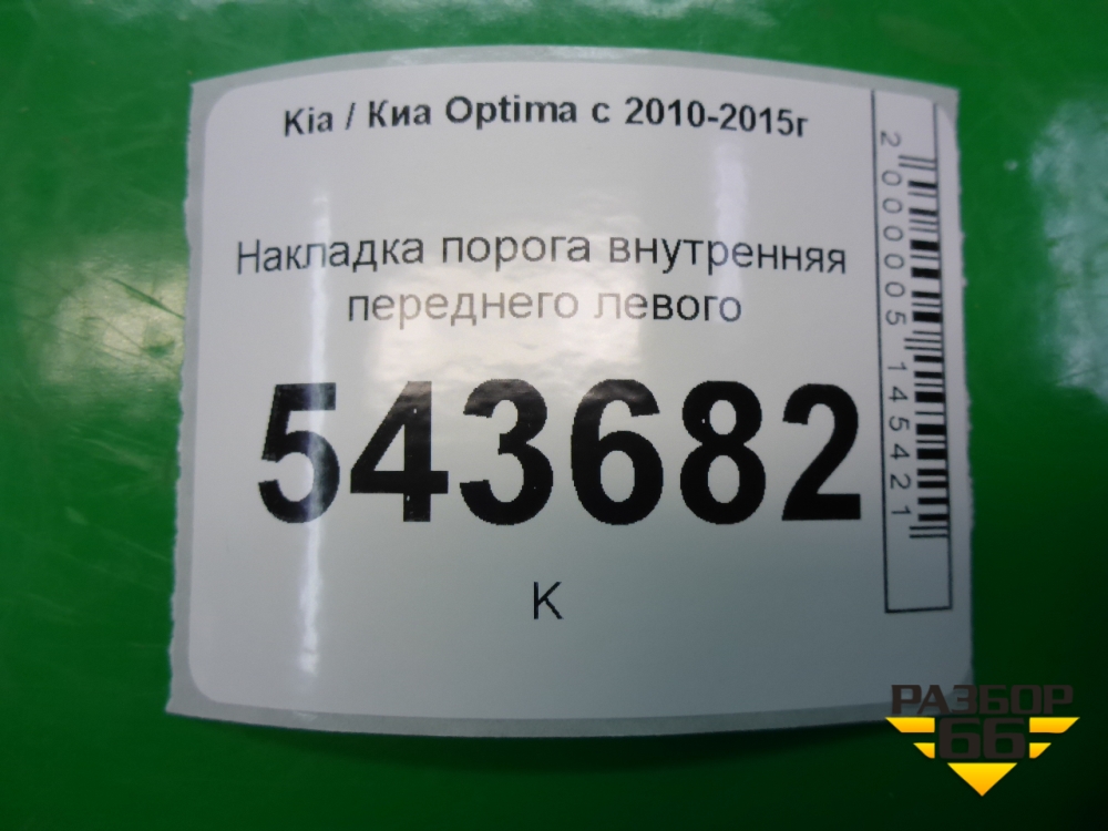 Накладка порога внутренняя переднего левого (858714C200) для Kia Optima с 2010-2015г (Оптима 3) в Тюмени