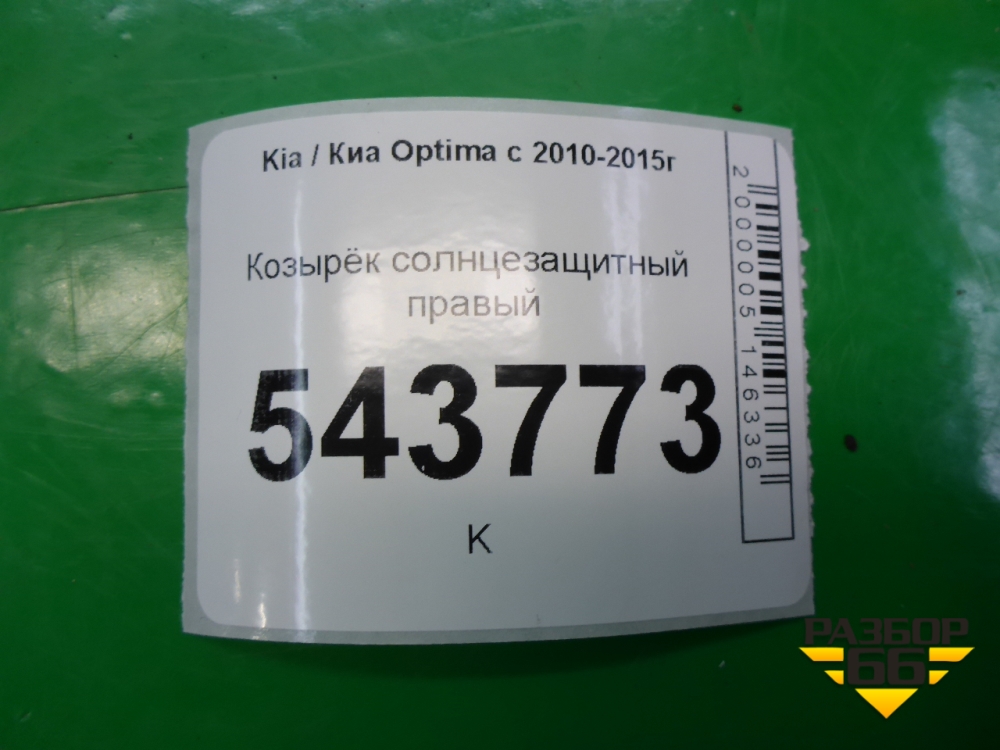 Козырёк солнцезащитный правый для Kia Optima с 2010-2015г (Оптима 3) в Тюмени