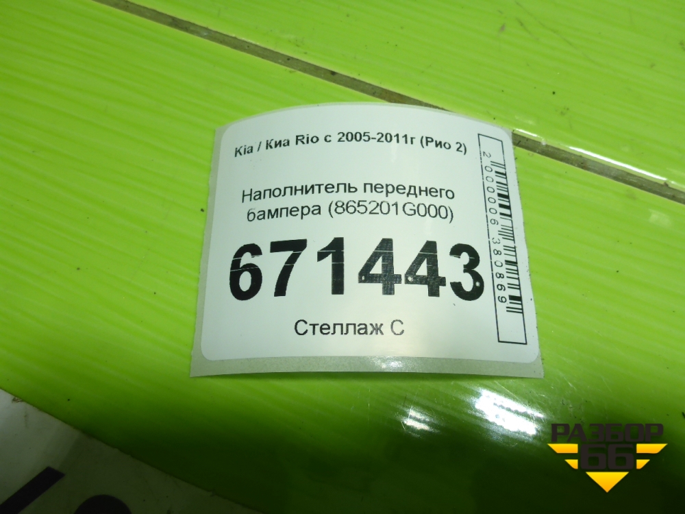 Наполнитель переднего бампера (865201G000) для Kia Rio с 2005-2011г (Рио 2) в Тюмени