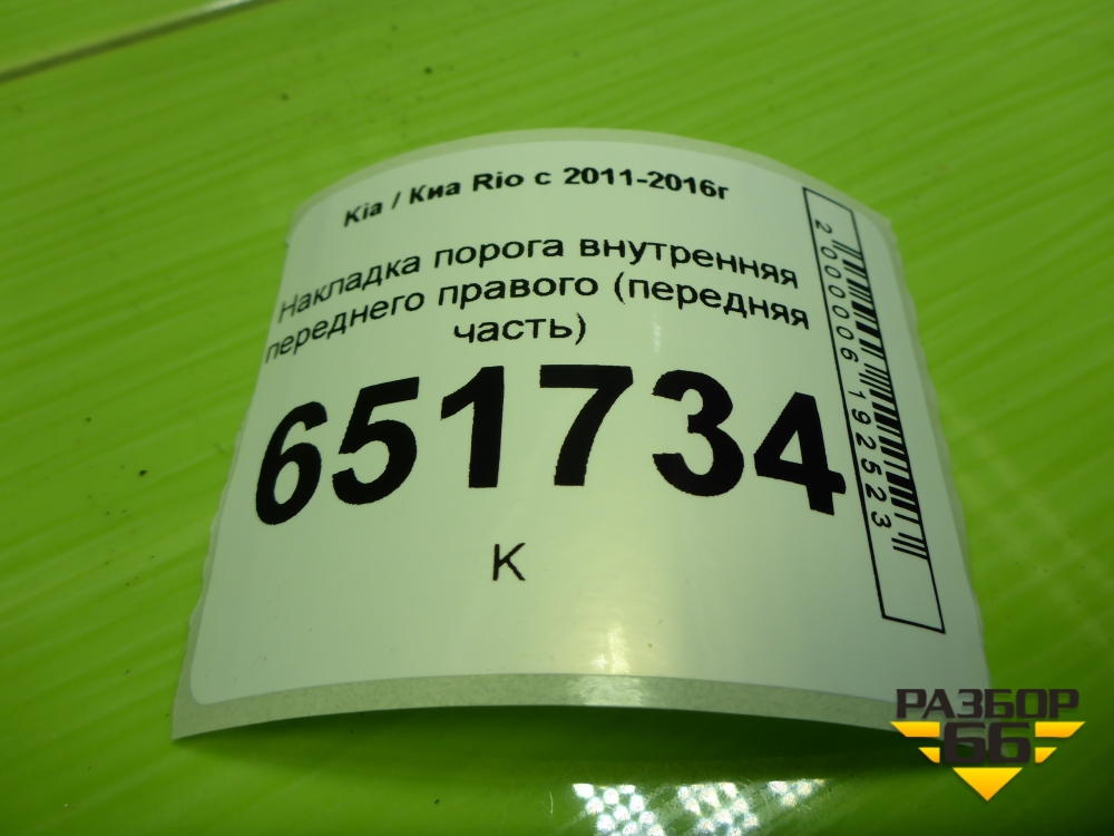 Накладка порога внутренняя переднего правого (передняя часть) (858244Y000) для Kia Rio с 2011-2016г (Рио 3) в Тюмени