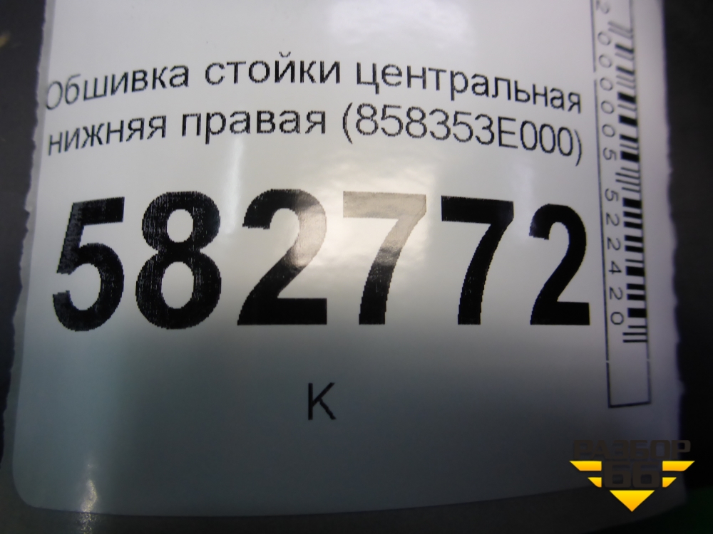 Обшивка стойки центральная нижняя правая (858353E000) для Kia Sorento I с 2002-2011г (Соренто 1) в Тюмени