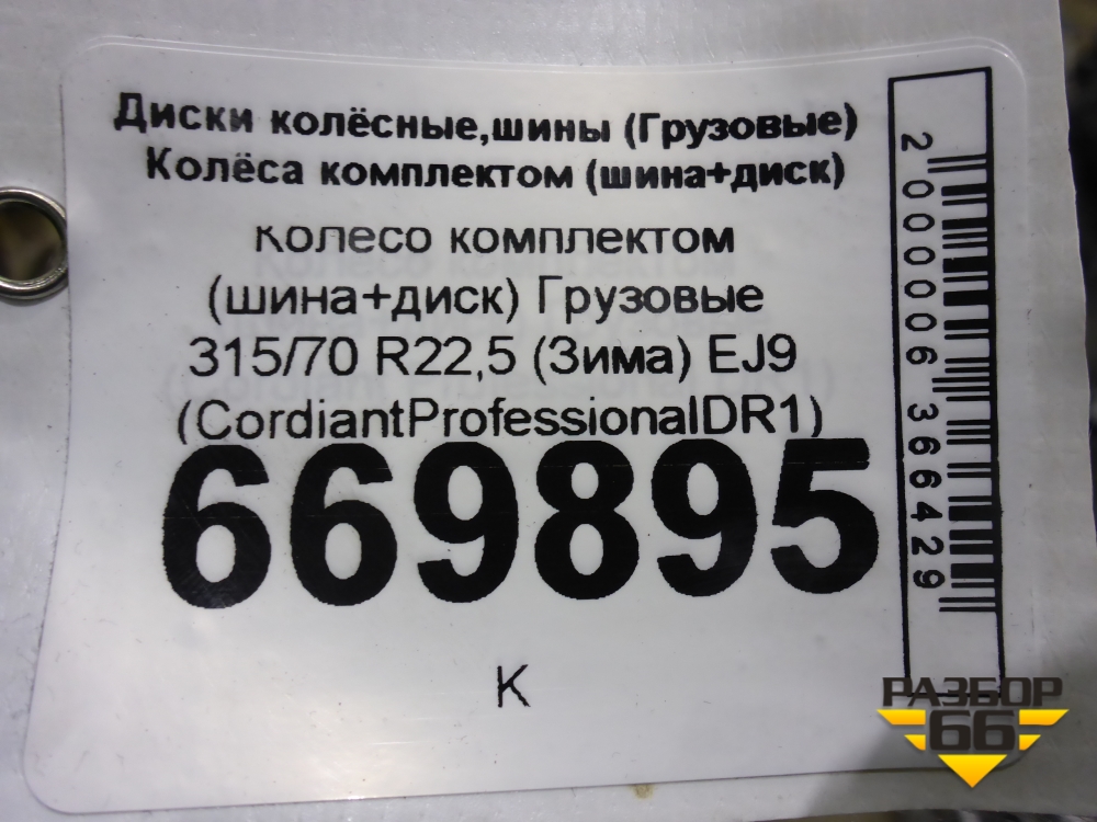 Колесо комплектом (шина+диск) 315/70 R22,5 (ЗимаЛето) EJ9 (CordiantProfessionalDR1) в Тюмени