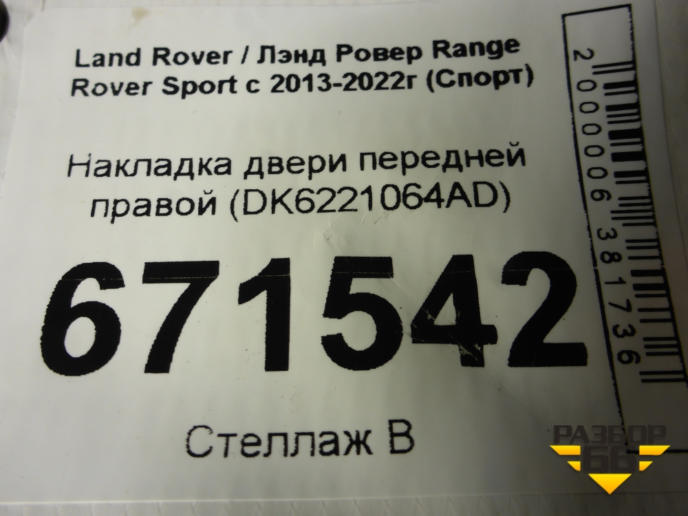 Накладка двери передней правой (DK6221064AD) для Land Rover Range Rover Sport с 2013-2022г (Спорт) в Тюмени