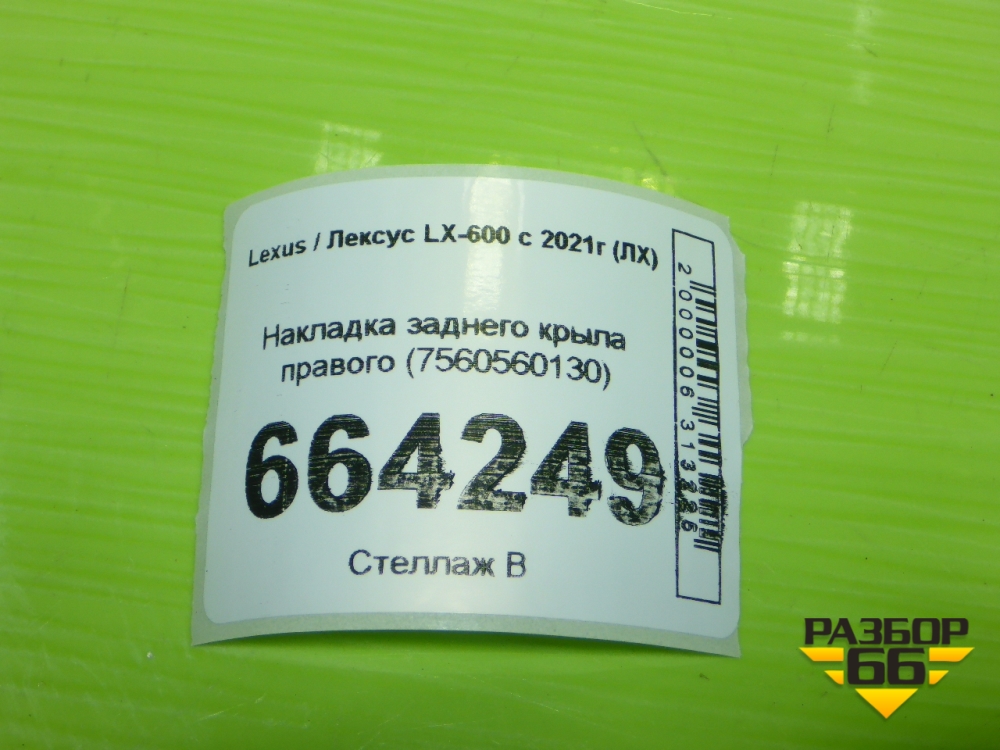 Накладка заднего крыла правого (7560560130) для Lexus LX-600 с 2021г (ЛХ) в Тюмени