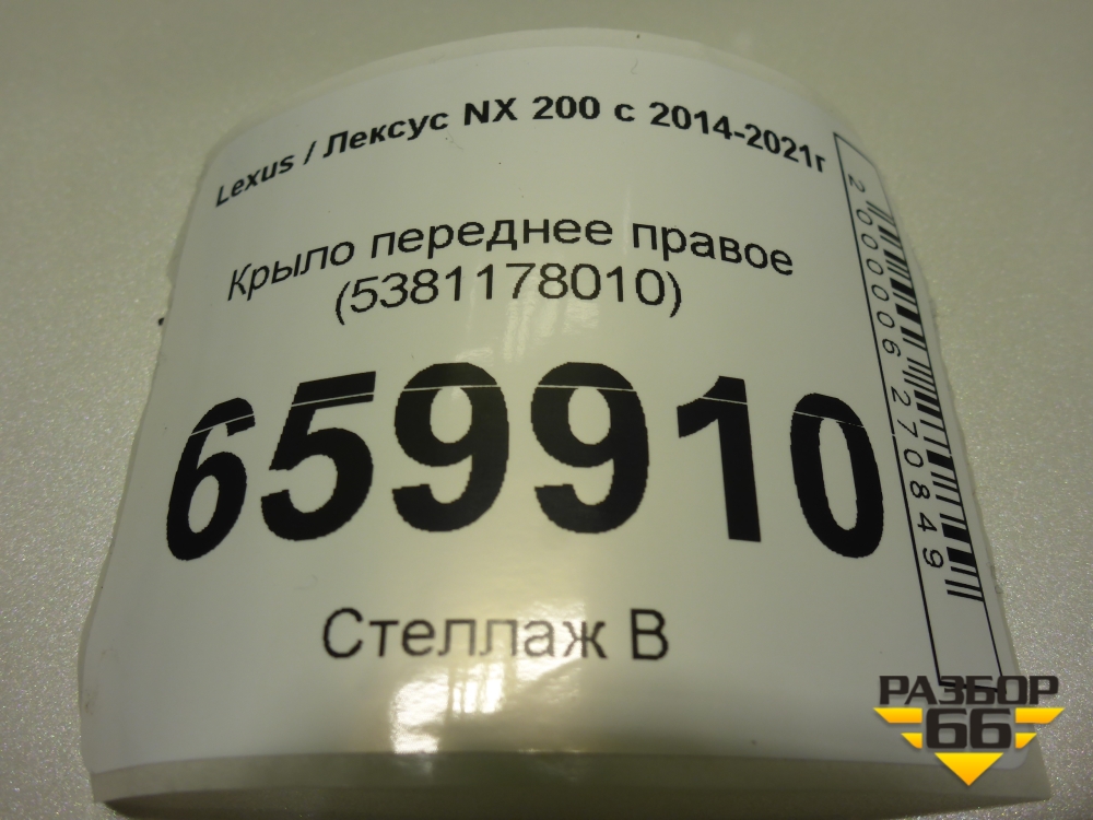Крыло переднее правое (5381178010) для Lexus NX 200 с 2014-2021г (НХ) в Тюмени