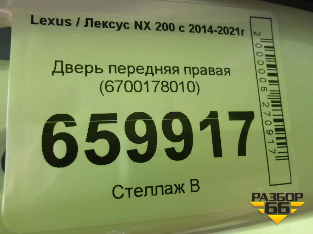 Дверь передняя правая (6700178010) для Lexus NX 200 с 2014-2021г (НХ) в Тюмени