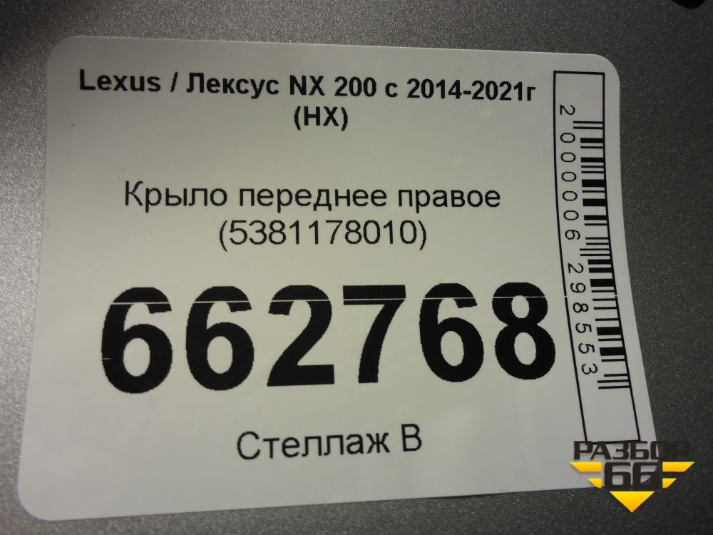 Крыло переднее правое (5381178010) для Lexus NX 200 с 2014-2021г (НХ) в Тюмени