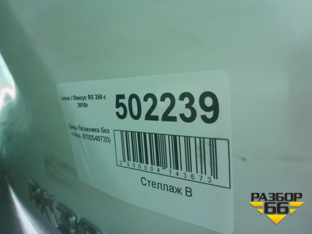 Дверь багажника без стекла (6700548720) для Lexus RX 350 c 2015г (РХ) в Тюмени