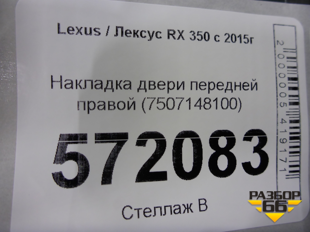 Накладка двери передней правой (7507148100) для Lexus RX 350 c 2015г (РХ) в Тюмени