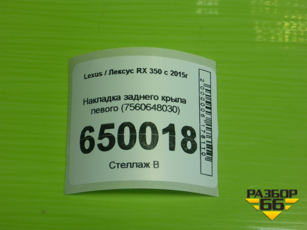 Накладка заднего крыла левого (7560648030) для Lexus RX 350 c 2015г (РХ) в Тюмени