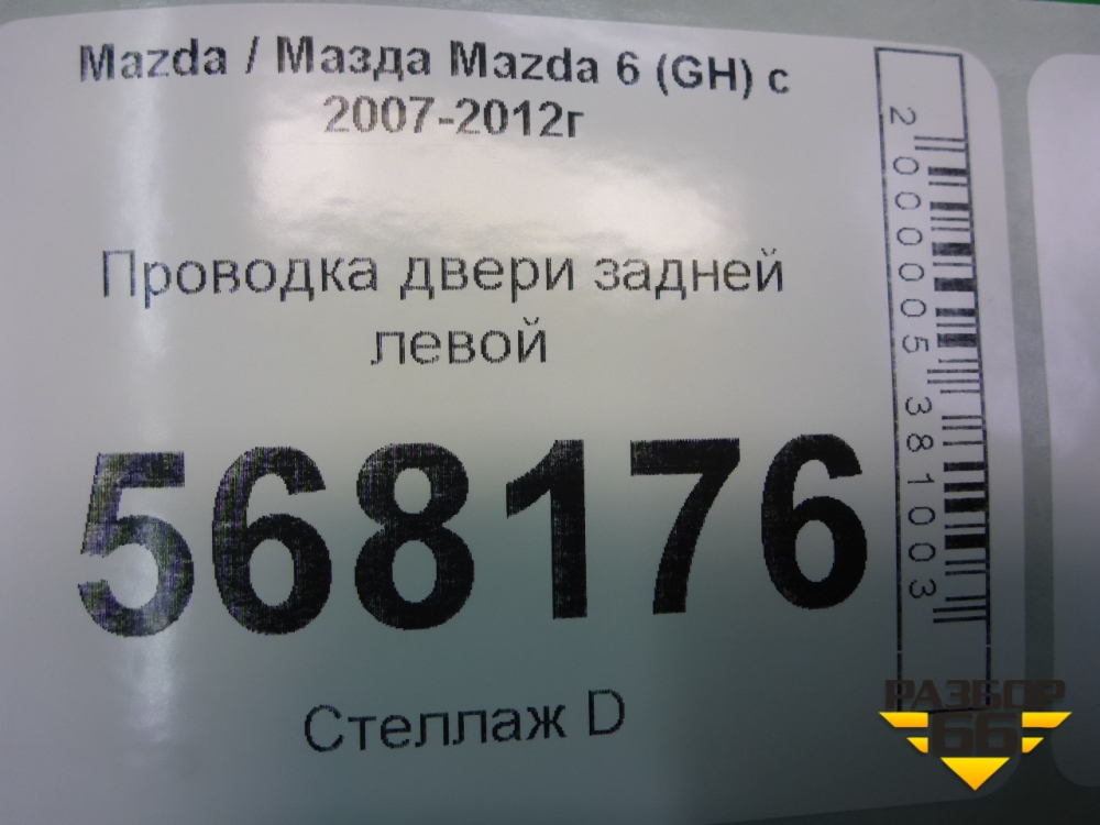 Проводка двери задней левой (G39A67210B) для Mazda Mazda 6 (GH) с 2007-2012г в Тюмени
