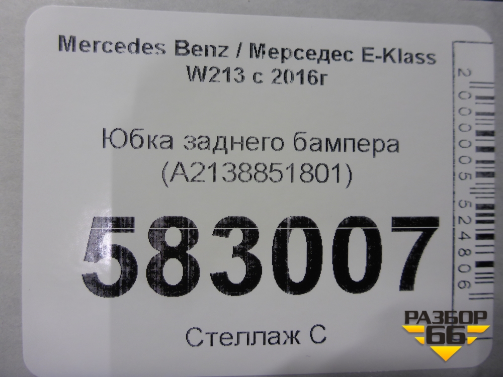 Юбка заднего бампера (A2138851801) для Mercedes Benz E-Klass W213 с 2016г (Е) в Тюмени