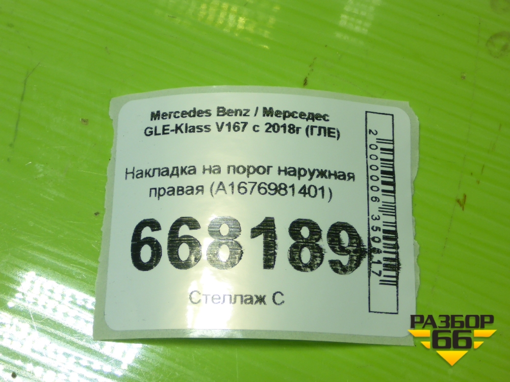 Накладка на порог наружная правая (A1676981401) для Mercedes Benz GLE-Klass V167 с 2018г (ГЛЕ) в Тюмени
