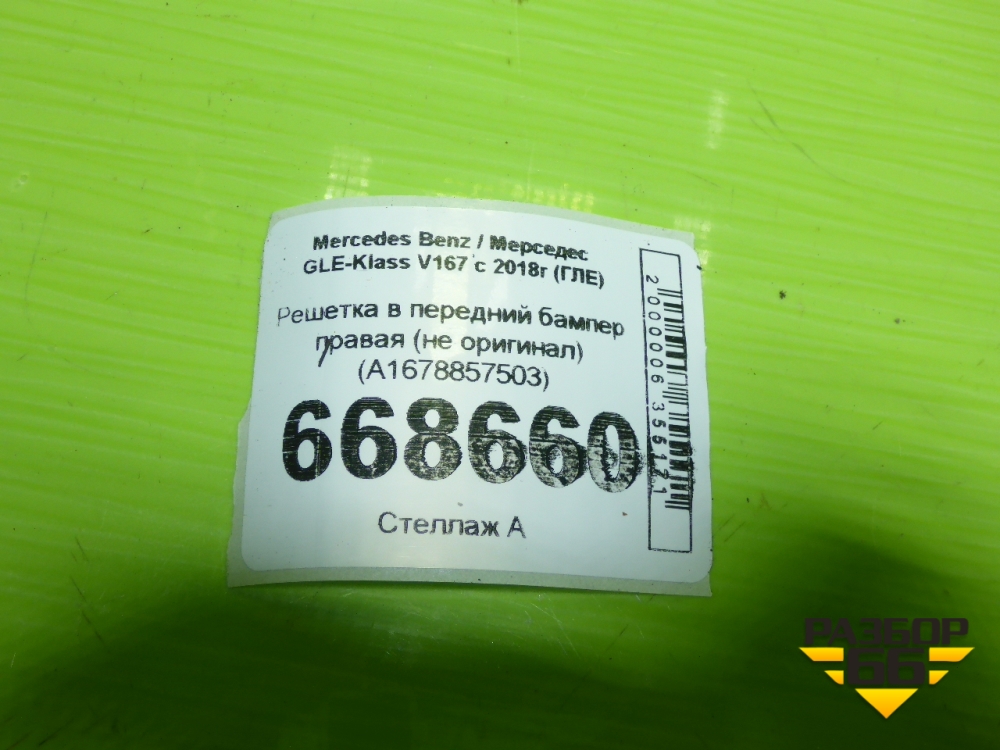 Решетка в передний бампер правая (не оригинал) (A1678857503) для Mercedes Benz GLE-Klass V167 с 2018г (ГЛЕ) в Тюмени
