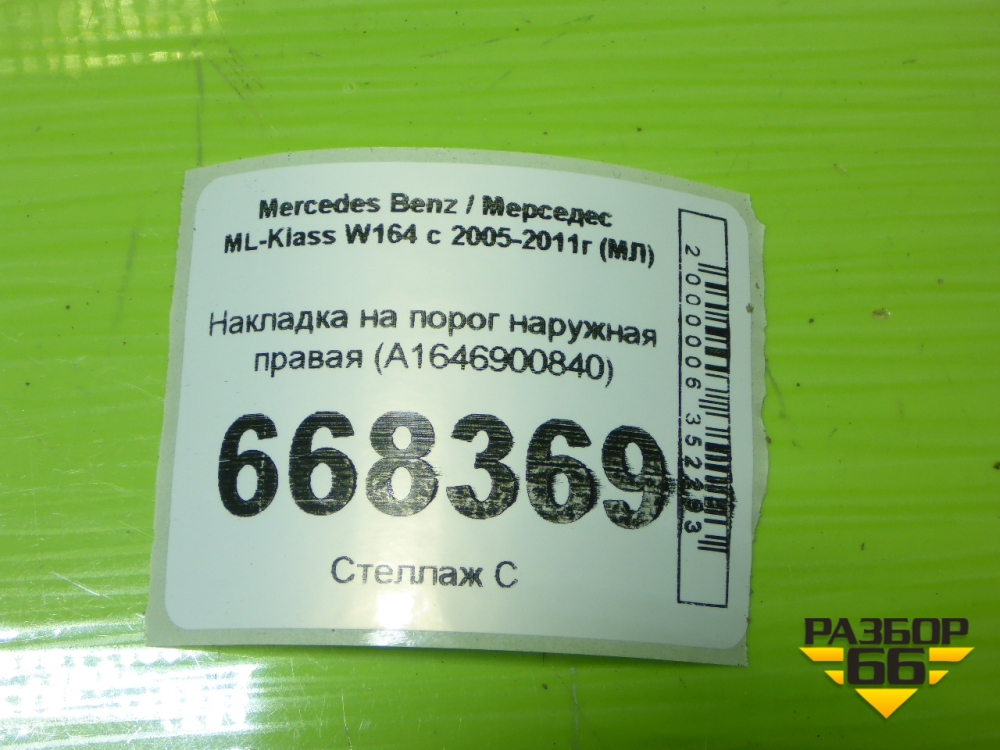Накладка на порог наружная правая (A1646900840) для Mercedes Benz ML-Klass W164 c 2005-2011г (МЛ) в Тюмени