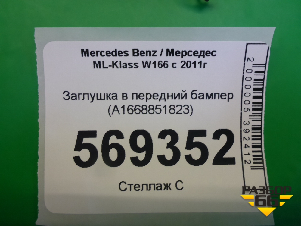 Заглушка в передний бампер (A1668851823) для Mercedes Benz ML-Klass W166 c 2011г (МЛ) в Тюмени