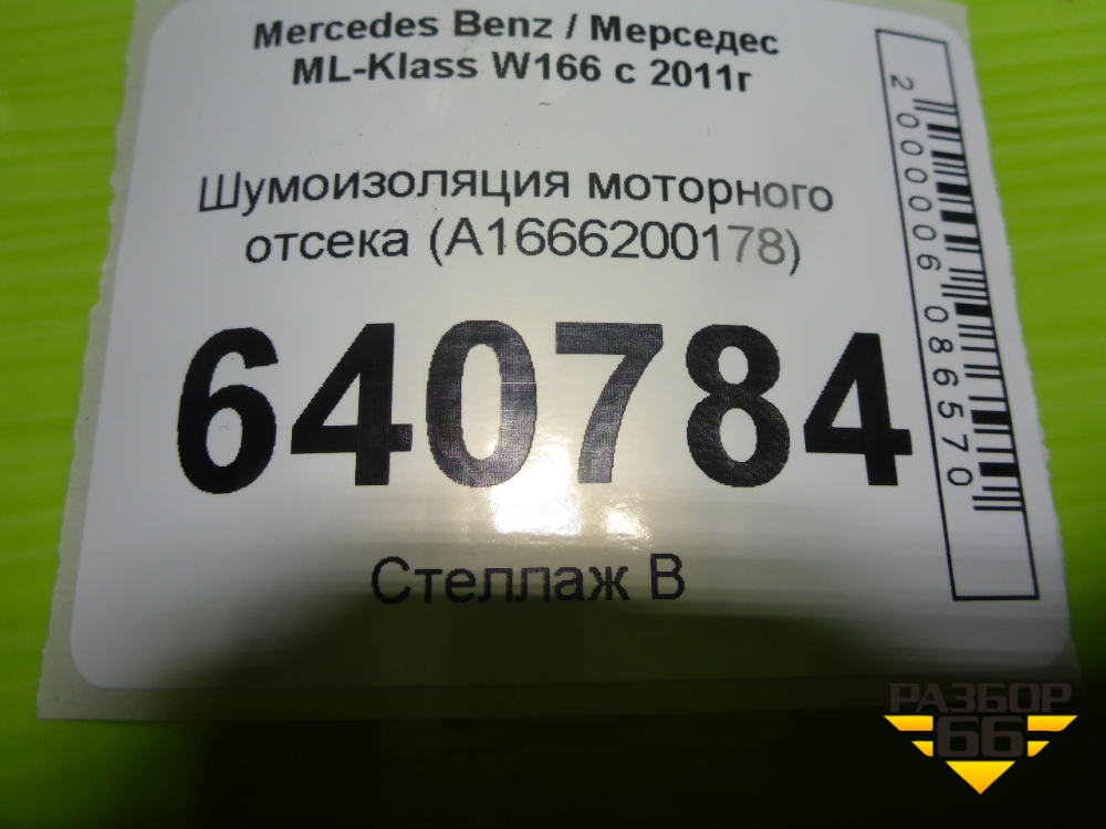 Шумоизоляция моторного отсека (A1666200178) для Mercedes Benz ML-Klass W166 c 2011г (МЛ) в Тюмени