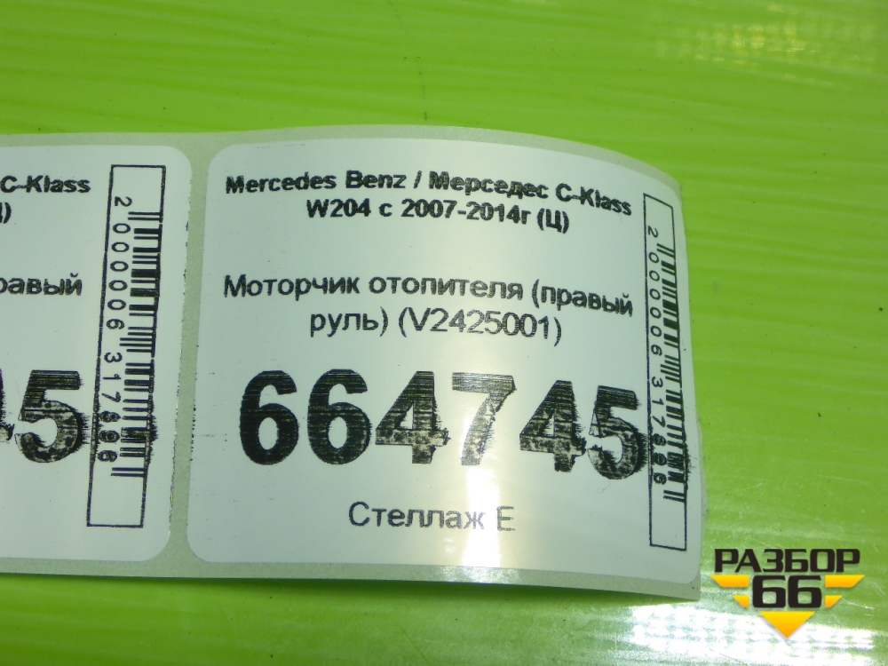 Моторчик отопителя (правый руль) (V2425001) для Mercedes Benz C-Klass W204 с 2007-2014г (Ц) в Тюмени