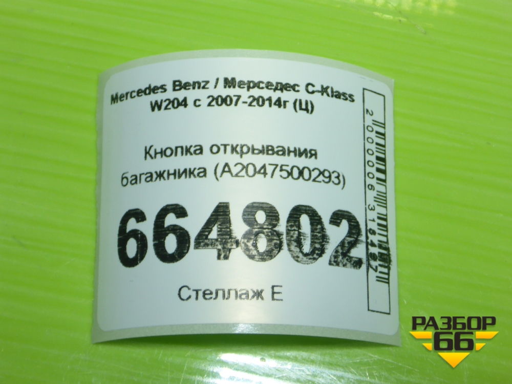 Кнопка открывания багажника (A2047500293) для Mercedes Benz C-Klass W204 с 2007-2014г (Ц) в Тюмени