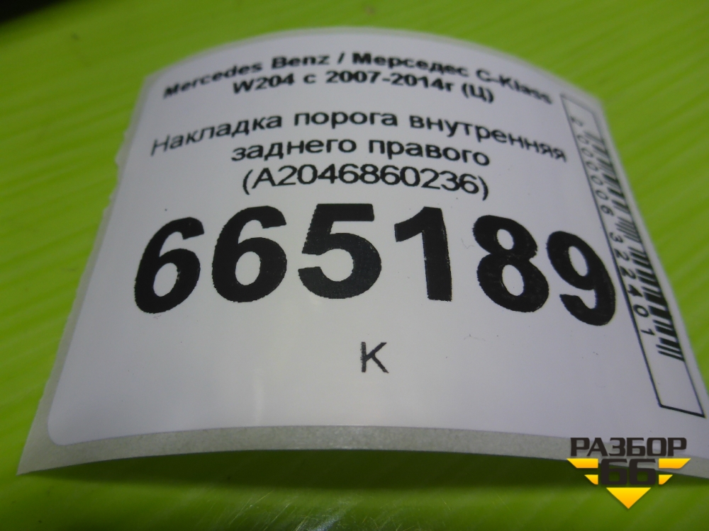 Накладка порога внутренняя заднего правого (A2046860236) для Mercedes Benz C-Klass W204 с 2007-2014г (Ц) в Тюмени