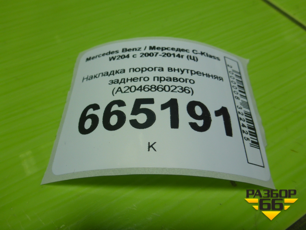 Накладка порога внутренняя заднего правого (A2046860236) для Mercedes Benz C-Klass W204 с 2007-2014г (Ц) в Тюмени