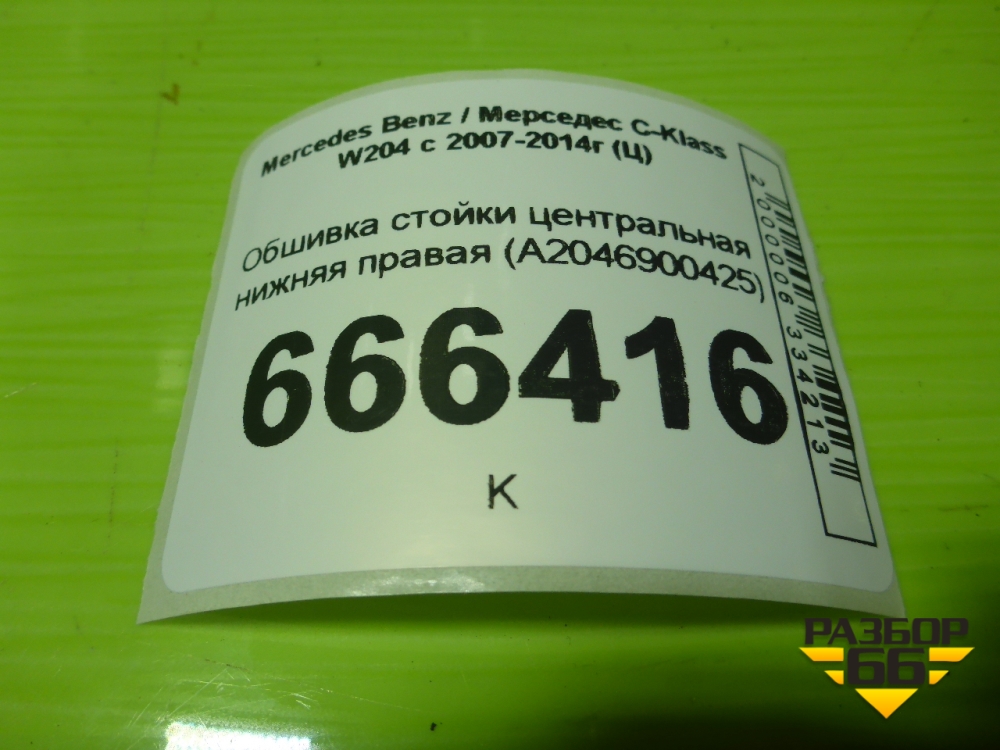 Обшивка стойки центральная нижняя правая (A2046900425) для Mercedes Benz C-Klass W204 с 2007-2014г (Ц) в Тюмени
