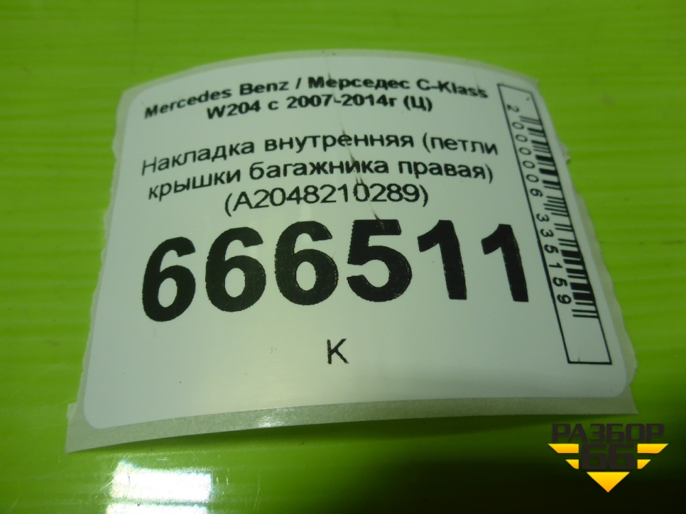 Накладка внутренняя (петли крышки багажника правая) (A2048210289) для Mercedes Benz C-Klass W204 с 2007-2014г (Ц) в Тюмени