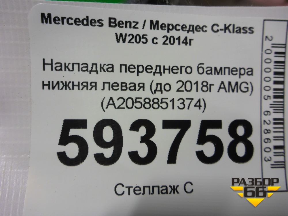 Накладка переднего бампера нижняя левая (до 2018г AMG) (A2058851374) для Mercedes Benz C-Klass W205 с 2014г (Ц) в Тюмени