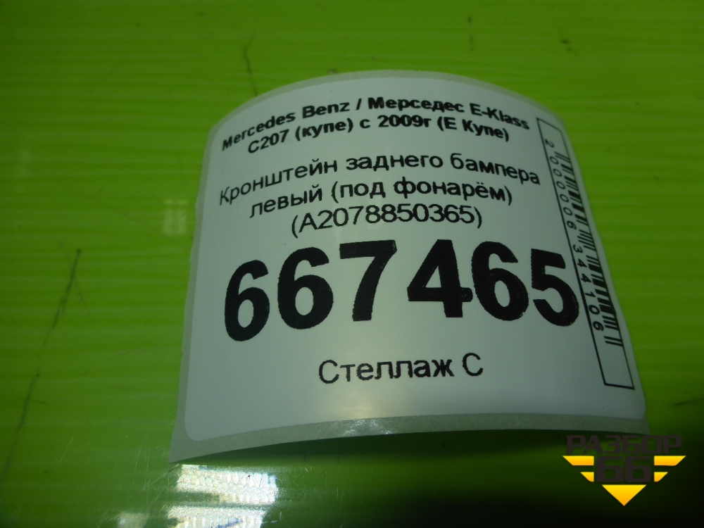 Кронштейн заднего бампера левый (под фонарём) (A2078850365) для Mercedes Benz E-Klass C207 (купе) с 2009г (Е Купе) в Тюмени