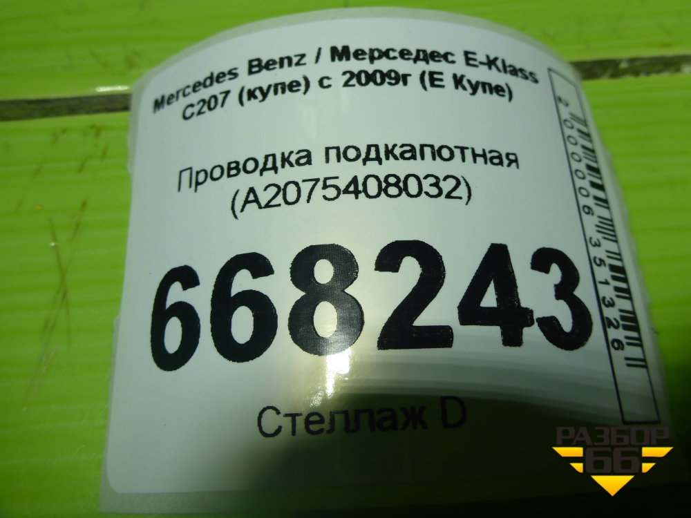 Проводка подкапотная (A2075408032) для Mercedes Benz E-Klass C207 (купе) с 2009г (Е Купе) в Тюмени