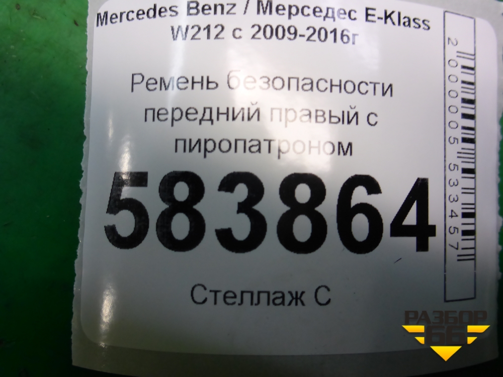 Ремень безопасности передний правый с пиропатроном (620048100) для Mercedes Benz E-Klass W212 с 2009-2016г (Е) в Тюмени