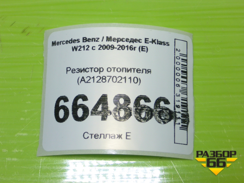 Резистор отопителя (A2128702110) для Mercedes Benz E-Klass W212 с 2009-2016г (Е) в Тюмени