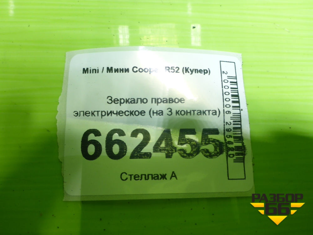 Зеркало правое электрическое (на 3 контакта) для Mini Cooper R50/52/53 (Купер) в Тюмени