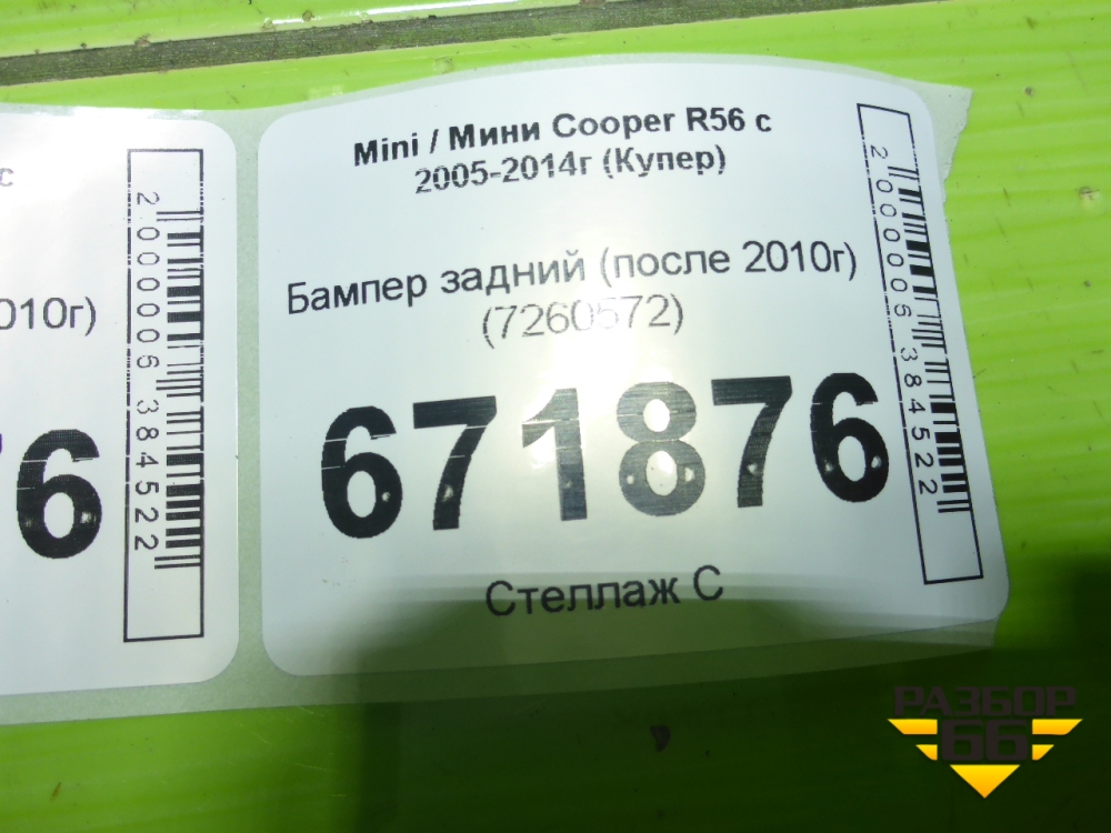 Бампер задний (после 2010г) (7260572) для Mini Cooper R56 с 2005-2014г (Купер) в Тюмени