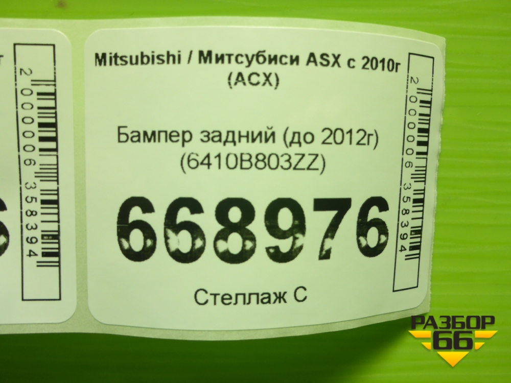 Бампер задний (до 2012г) (6410B803ZZ) для Mitsubishi ASX с 2010г (АСХ) в Тюмени