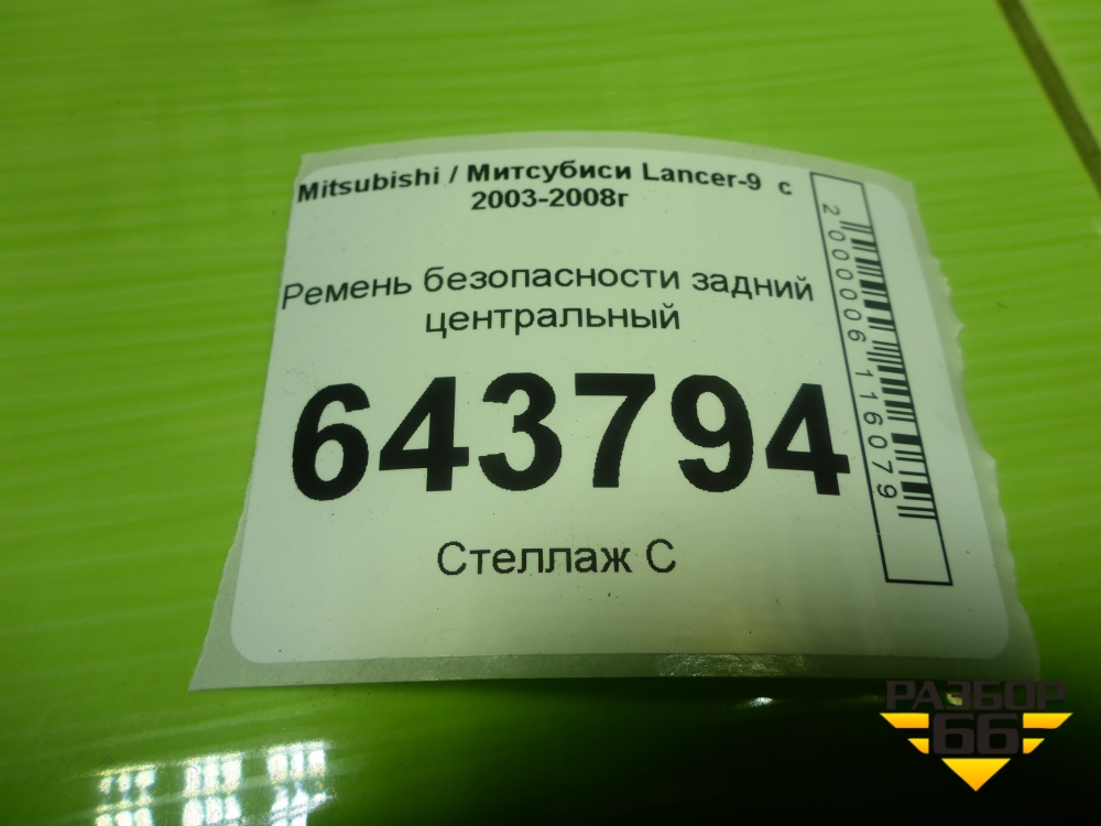 Ремень безопасности задний центральный (TKAB0N689) для Mitsubishi Lancer-9 с 2003-2008г (Лансер) в Тюмени