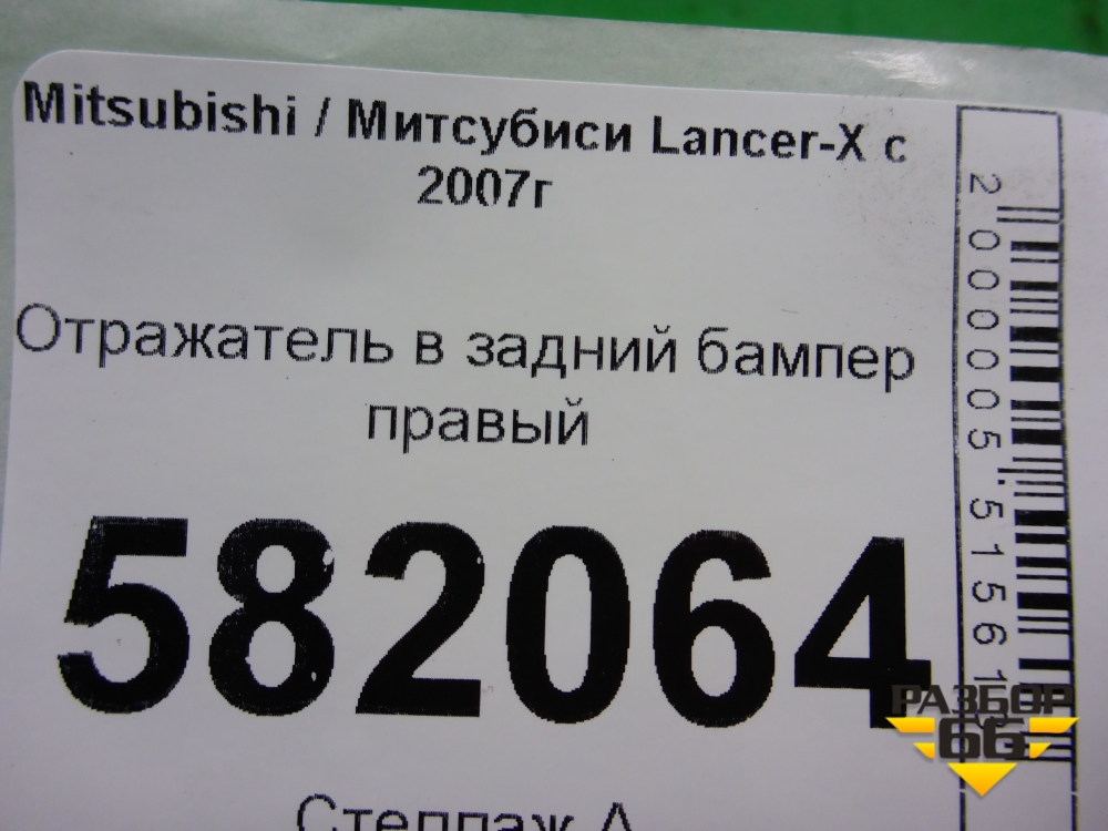 Отражатель в задний бампер правый (1197229R) для Mitsubishi Lancer-X с 2007г (Лансер) в Тюмени